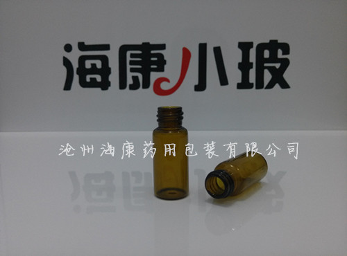 螺旋口口服液瓶。此款產品采用低硼矽玻璃管為原材料。在選料中可以有透明和棕色兩種顏色可選擇,我公司在生產前對