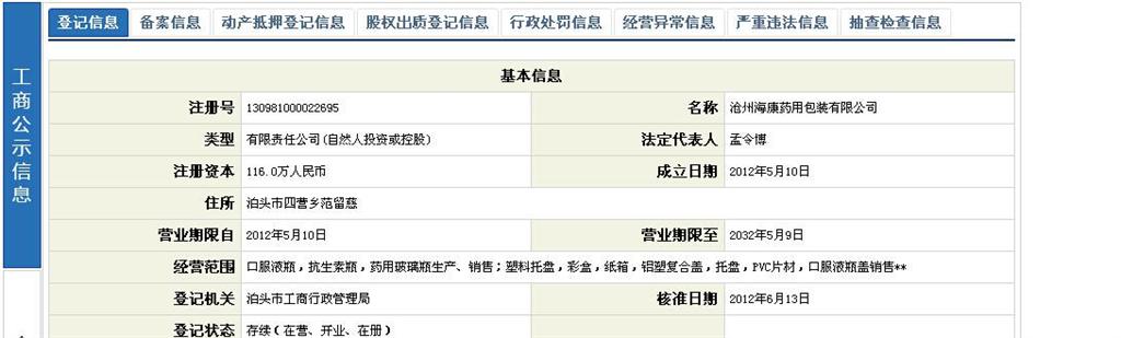 我公司全稱滄州海康藥用包裝有限公司,工廠位於河北省泊頭市四營工業開發區,具有國家食品藥品監督管理總局頒發的“藥用包裝材料和容器注冊證” 的企業,我公司證件分別是口服液包材的“國藥包字201406868”。注射劑瓶的“國藥包字20140866”。中性硼矽的“國藥包字20140857”。
