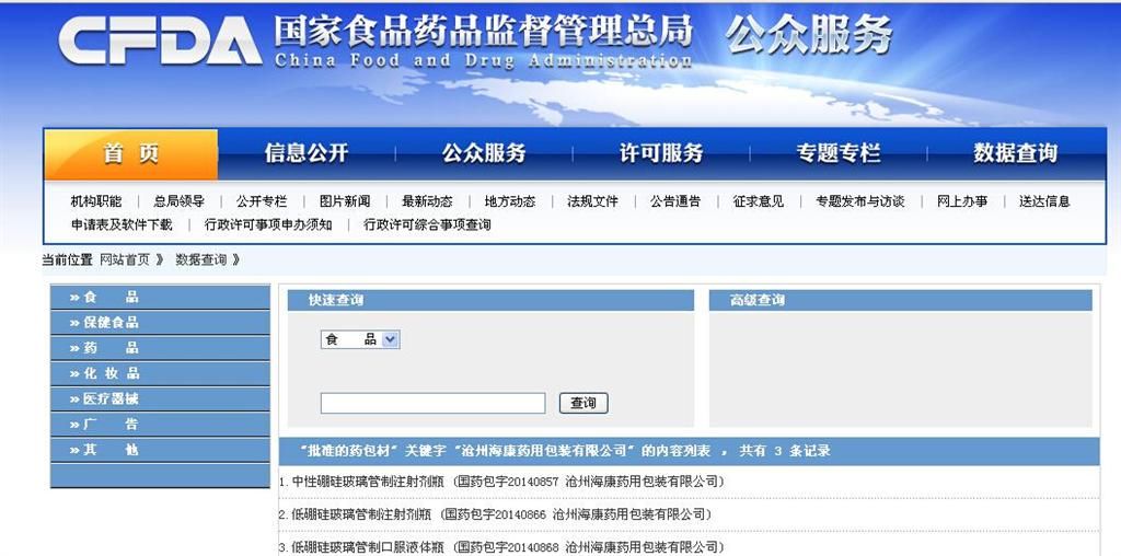 2、如果查詢無結果,說明此供應商並沒有經過國家食品藥品監督管理總局的許可,不是生產藥用包材和食品類包材的合格及合法的廠商。如果對方給發送過包材證件,也可以查詢一下供應商名稱和注冊證號是否一致,謹防套證(俗稱:套牌)。