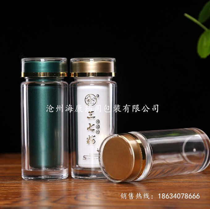 滄州海康公司專業生產保健品瓶,高端亞克力西洋參保健品瓶、新款PS材質保健品瓶、膠囊瓶、壓片糖果瓶、超細微粉瓶、瑪咖西洋參膠囊瓶、靈芝孢子油膠囊瓶、藏紅花瓶、三七粉瓶、黑枸杞瓶、蟲草瓶、鐵皮石斛瓶、西洋參包裝瓶規格齊全,產品新穎,品質高端,歡迎選購,選購熱線: