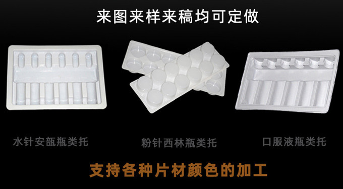 滄州海康公司是專業生產藥用塑料內托的知名企業,產品包括:藥用塑料內托、口服液塑料內托、針劑塑料內托、植絨塑料內托、藥用塑料內托的原材料主要有:PVC、PS、PP、PET、PETG及植絨、抗靜電、導電等材料,藥用塑料內托規格齊全,歡迎選購,選購熱線: